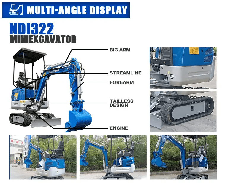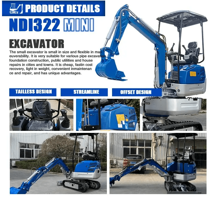 Rippa NDI355 mini excavator (4 tons). The NDI355 is an advanced model that is widely used in greenhouses, indoors, landscaping and construction. The four-cylinder Kubota engine is stable in operation, economical and powerful. Tilting boom, multi-degree of freedom operation, large deflection angle and great flexibility. Humanized design, frame, electronic throttle, etc., convenient for operation. Broken shutoff valve and quick-change connection make switching more convenient.