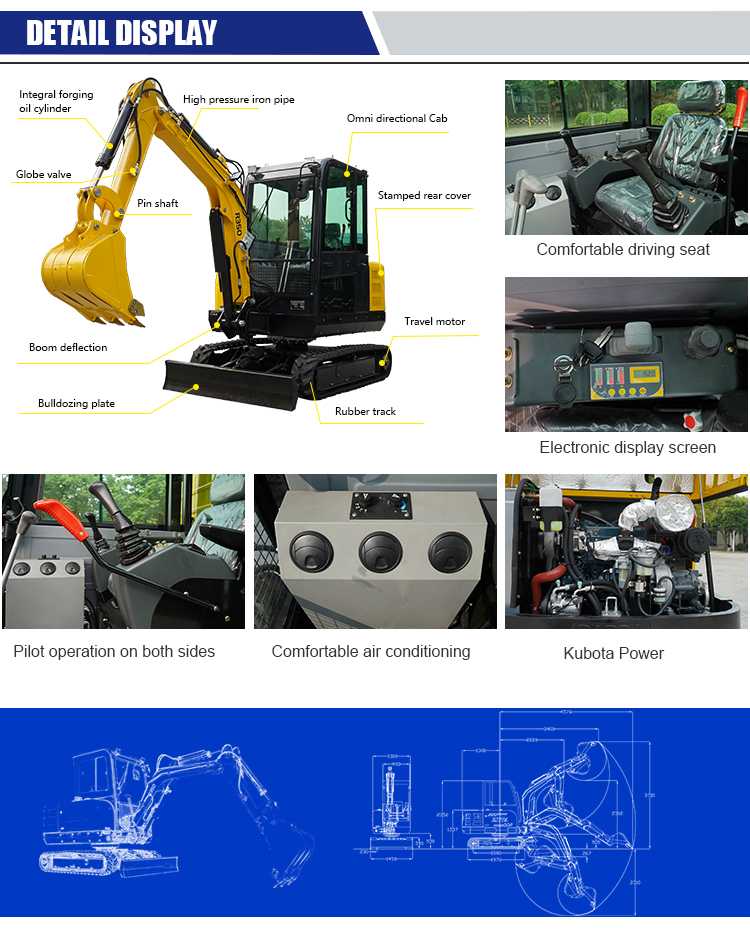 Этот небольшой 3-тонный экскаватор – шедевр, тщательно разработанный и изготовленный на нашем заводе. В нем используется двигатель Kubota с высокой мощностью и стабильной производительностью, который легко справляется с различными сложными условиями работы. В то же время его компактная конструкция корпуса, гибкость в работе и высокая эффективность работы позволяют ему хорошо работать при выполнении операций на небольших площадях и при точных операциях.